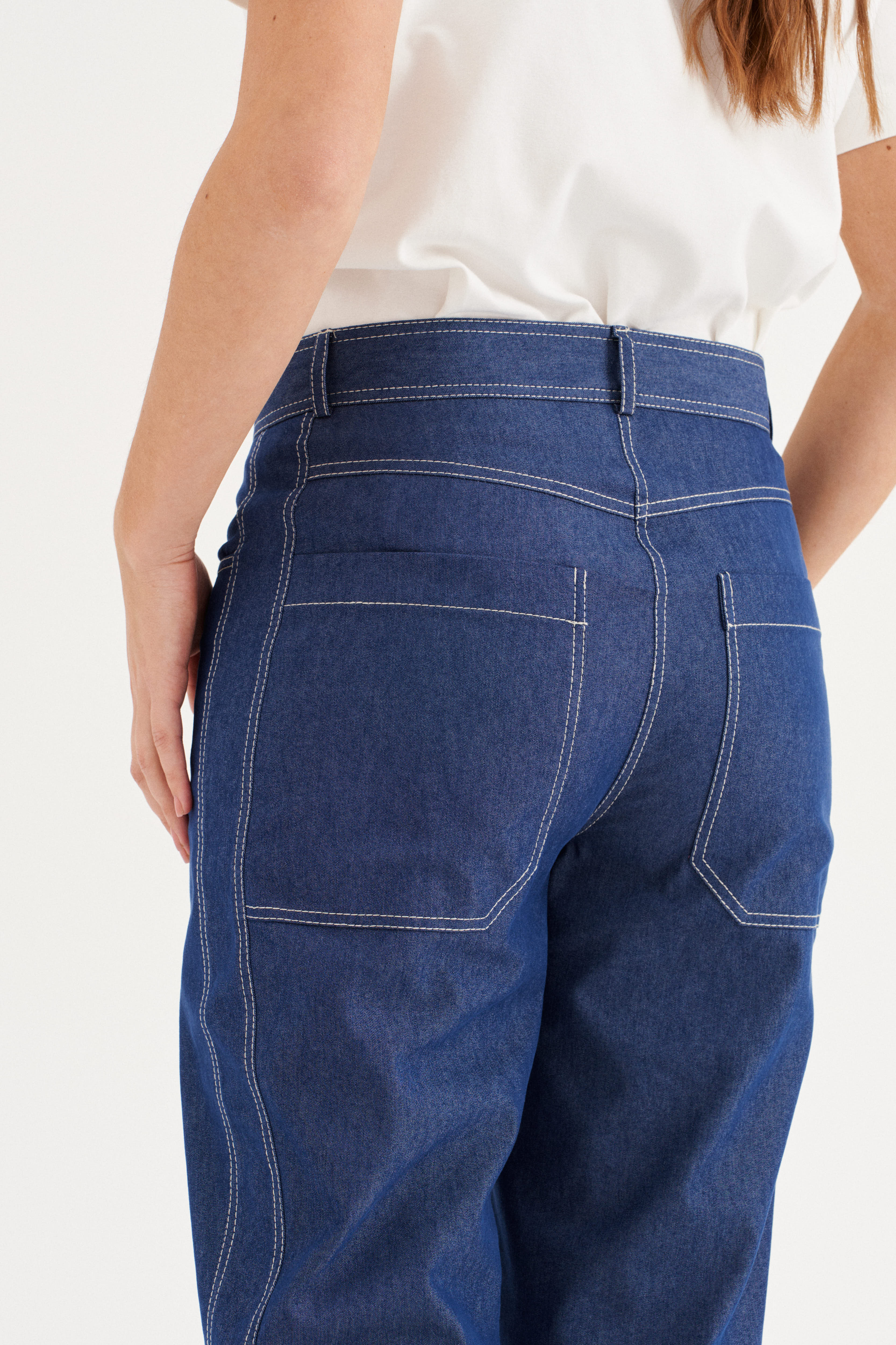 - Брюки из хлопковой ткани, силуэта "бананы"длиной до щиколотки.