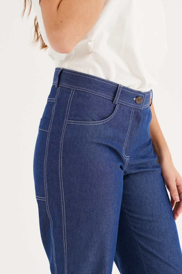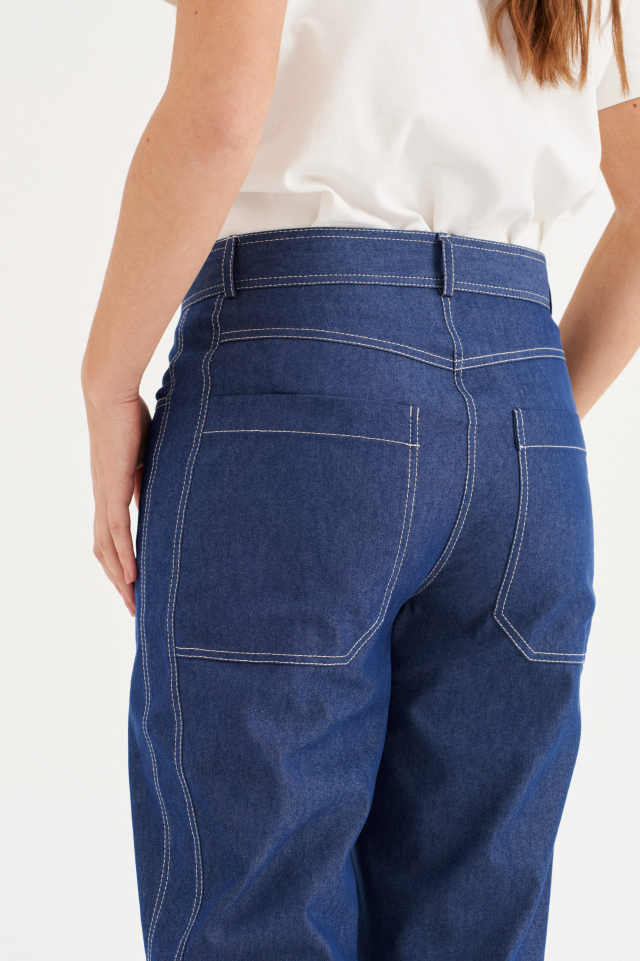 - По задним половинкам кокетка, накладные карманы и горизонтальные подрезы на уровне колен.