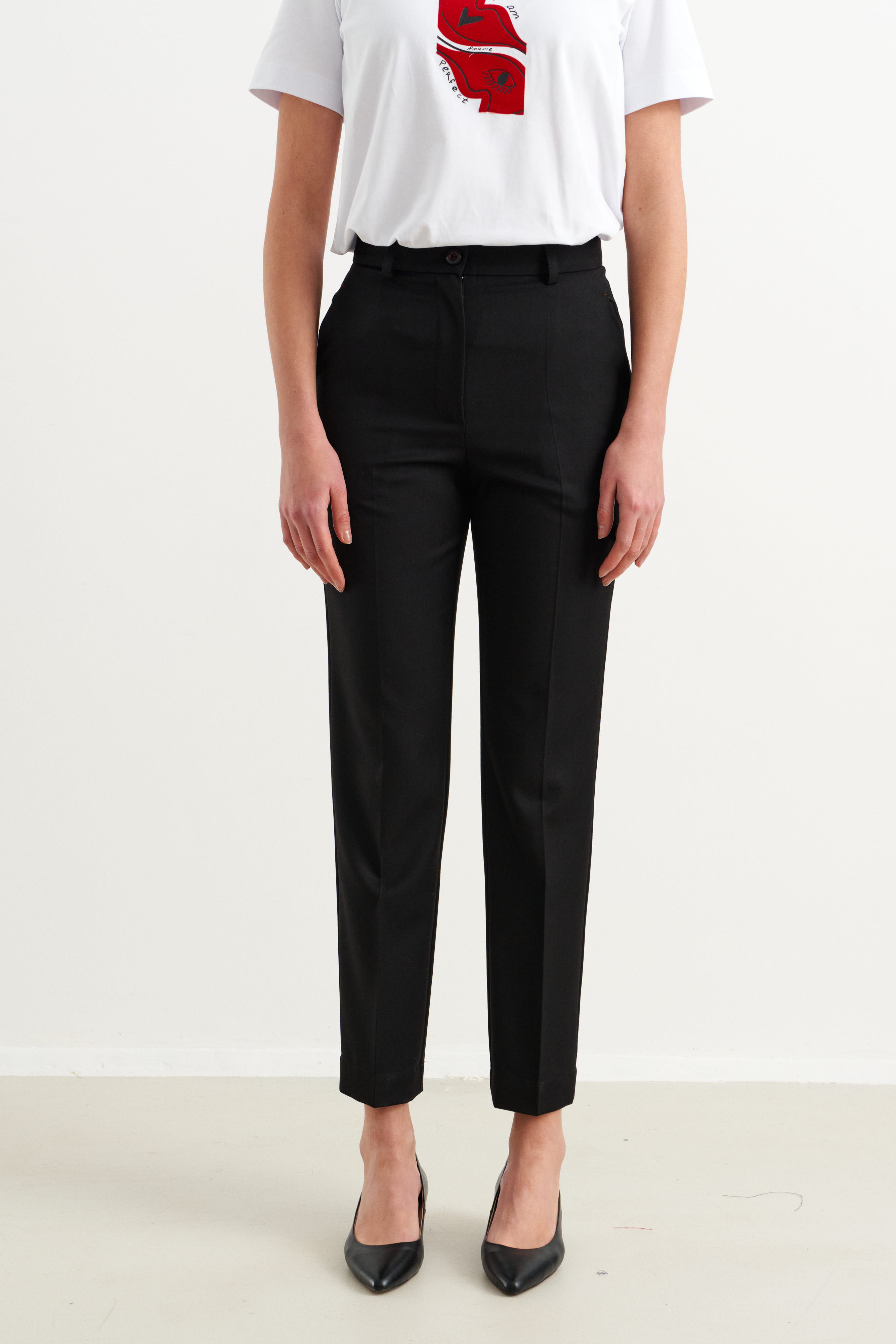 - Брюки классические,зауженные к низу,полной длины.
