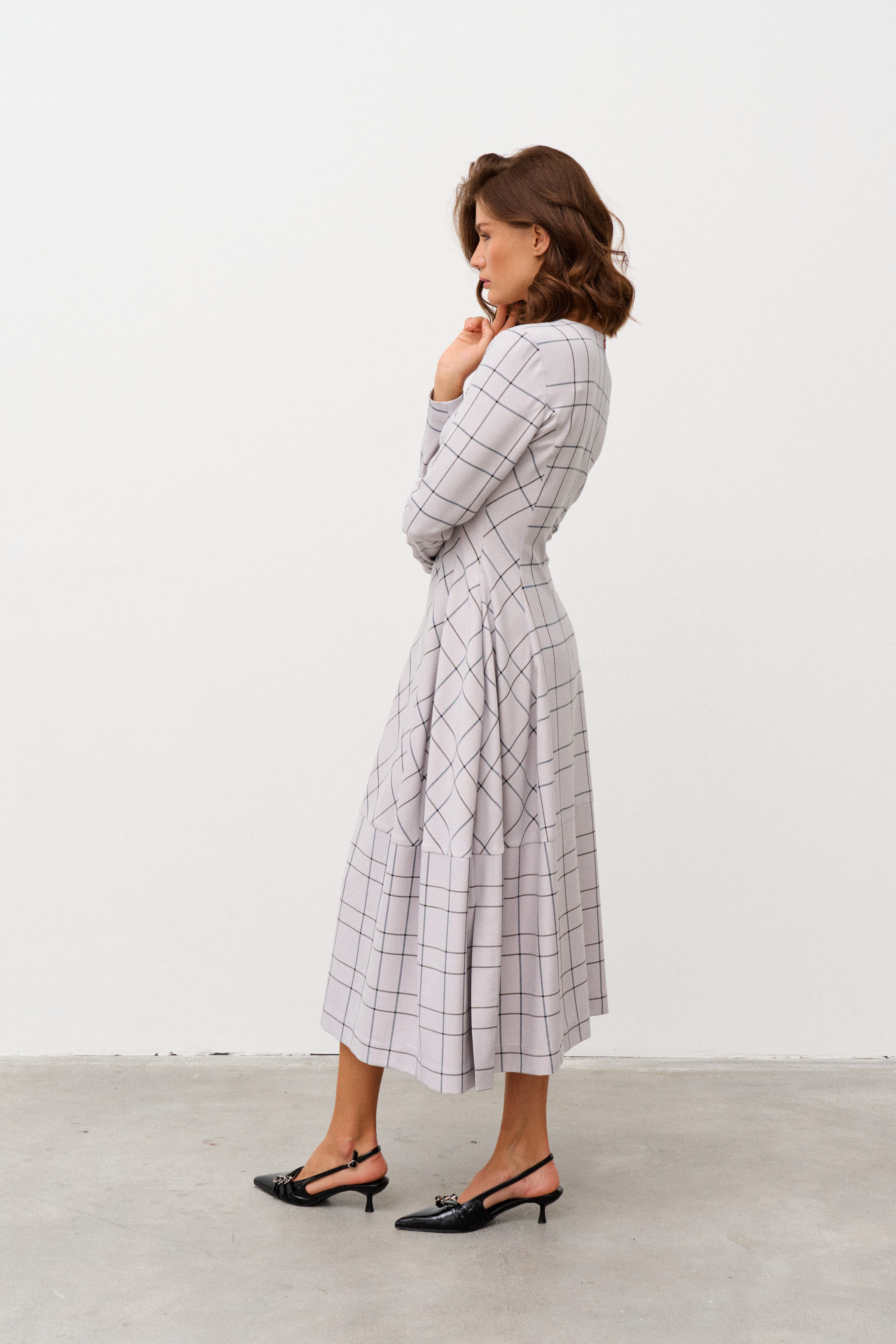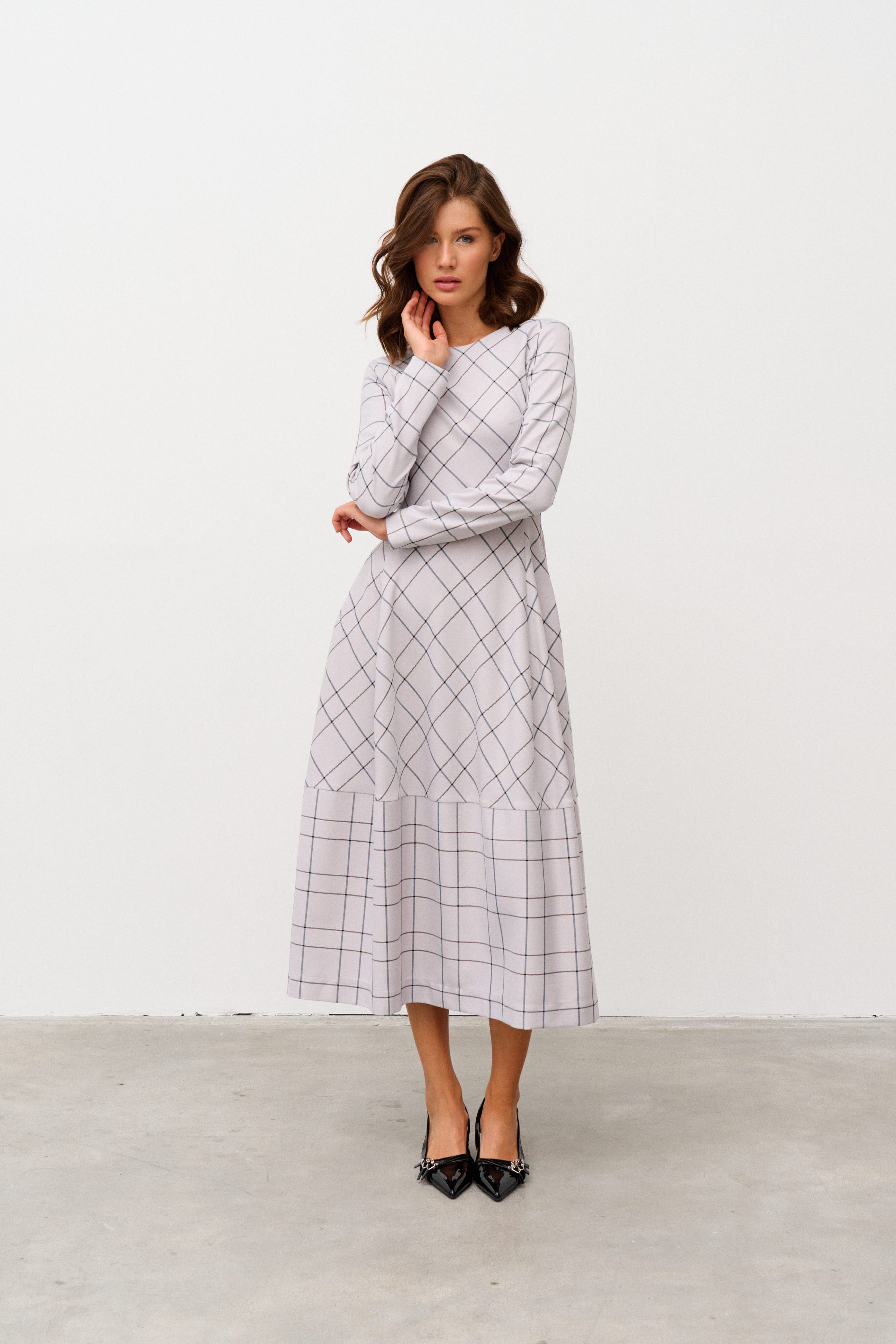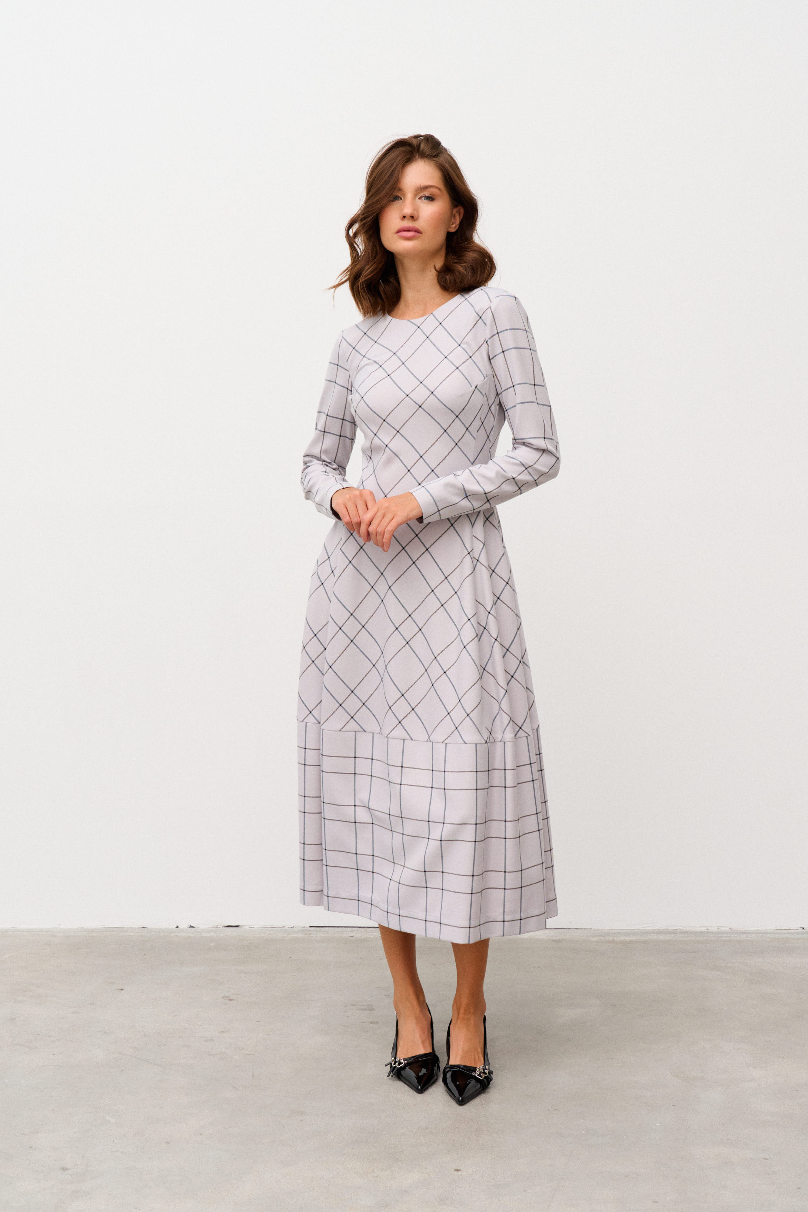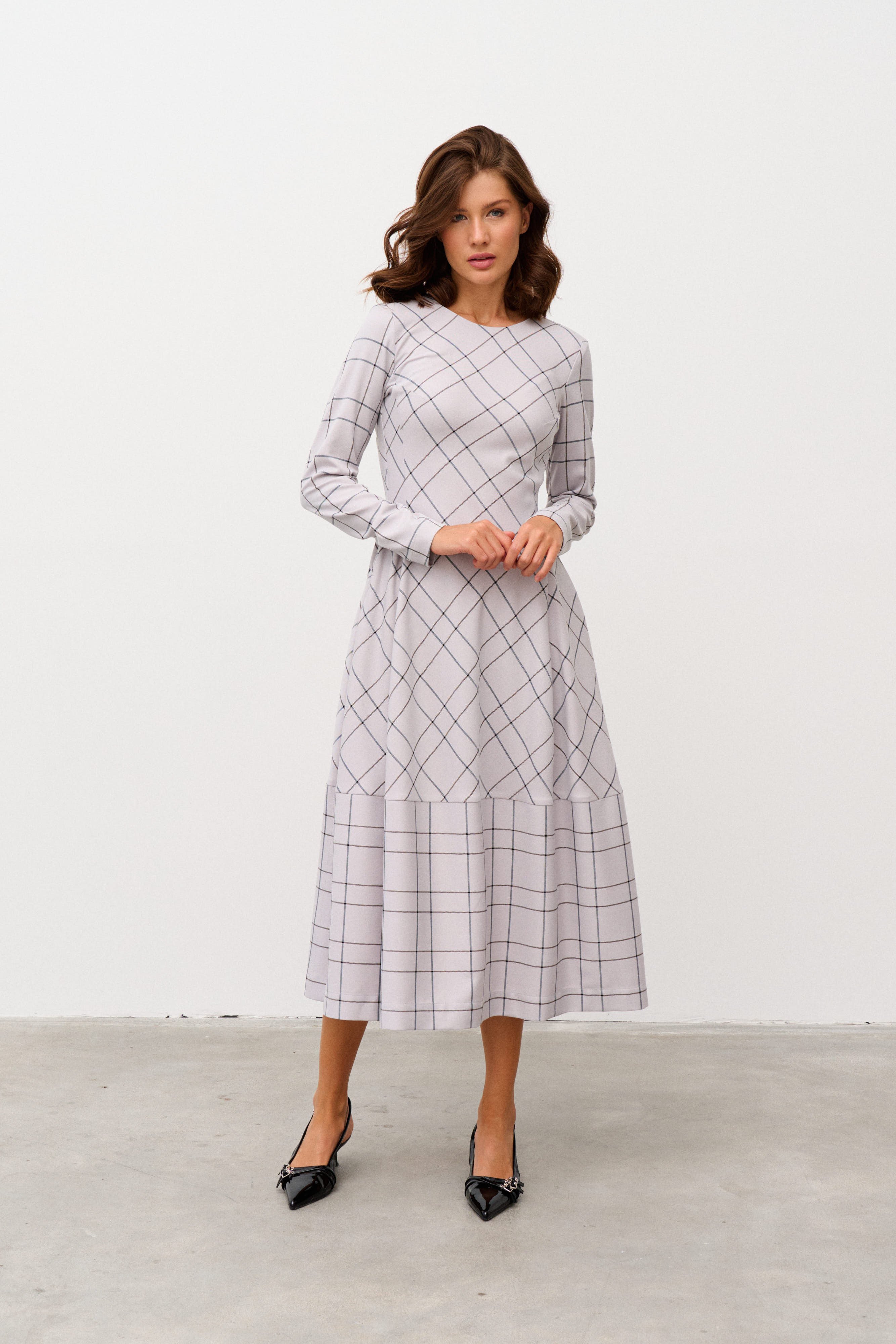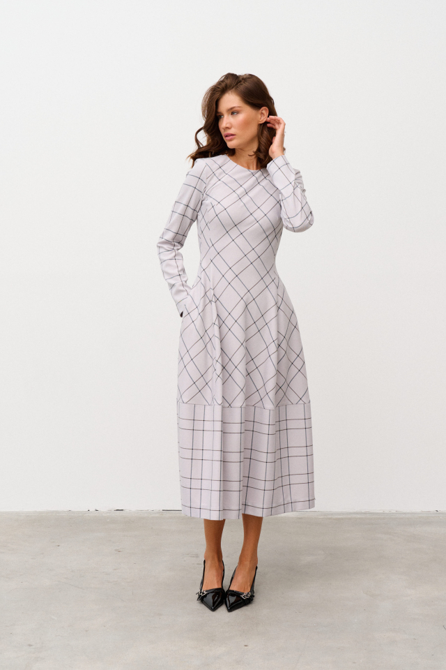 Платье миди в полоску Alba (Цвет: Светло-серая клетка)