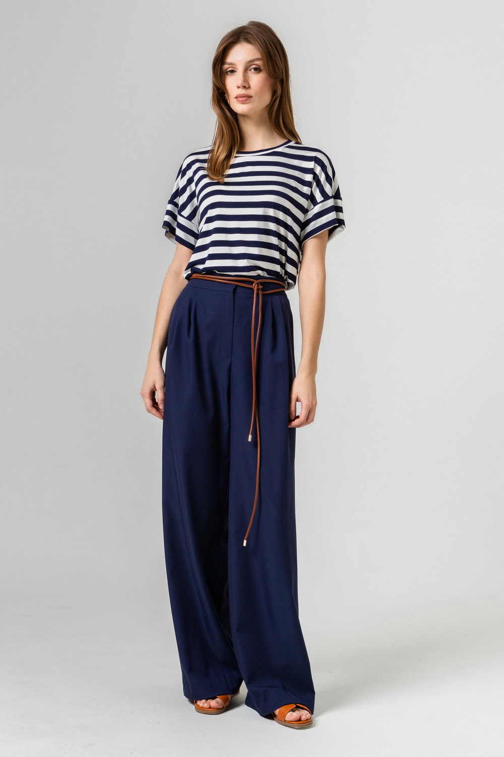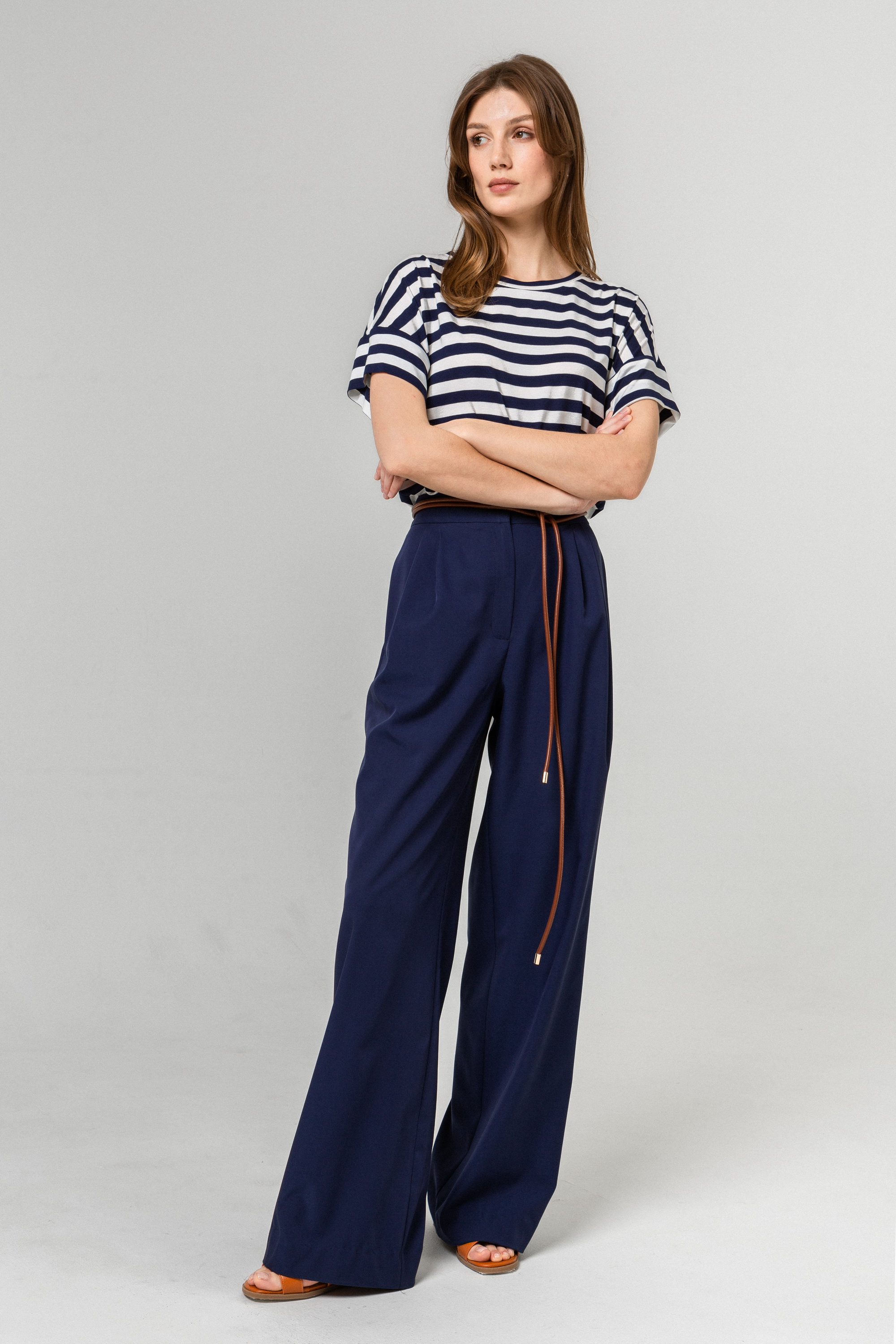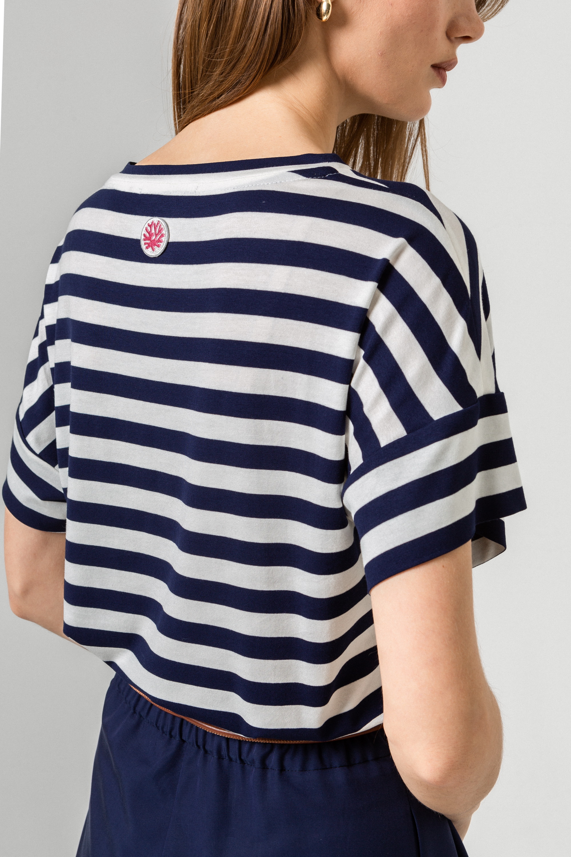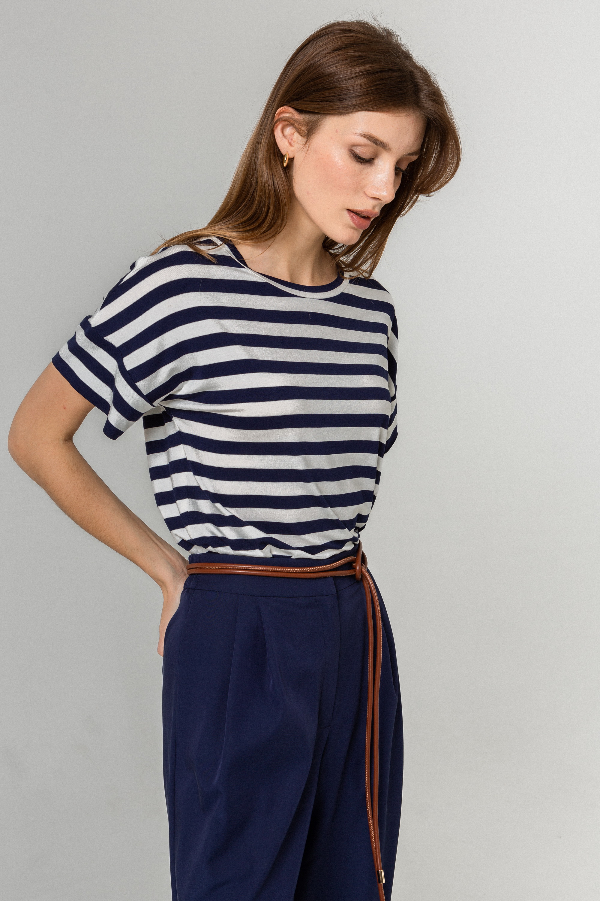 Футболка Patti из вискозной ткани, прямого свободного силуэта (Цвет: Синяя полоска)