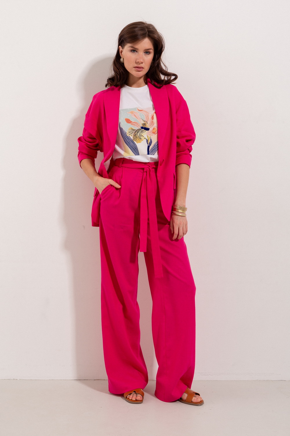 Костюм Lar из льняной ткани, прямого силуэта (Цвет: Малиновый)