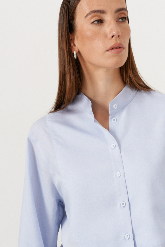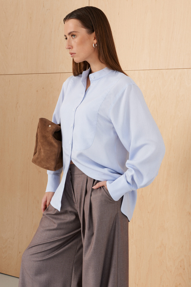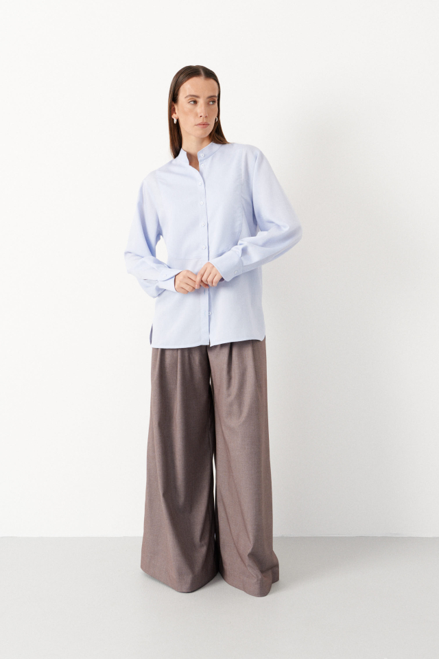 - Элегантный воротник-стойка и застежка на пуговицы добавляют модельную строгость и отсылают к классическому стилю.