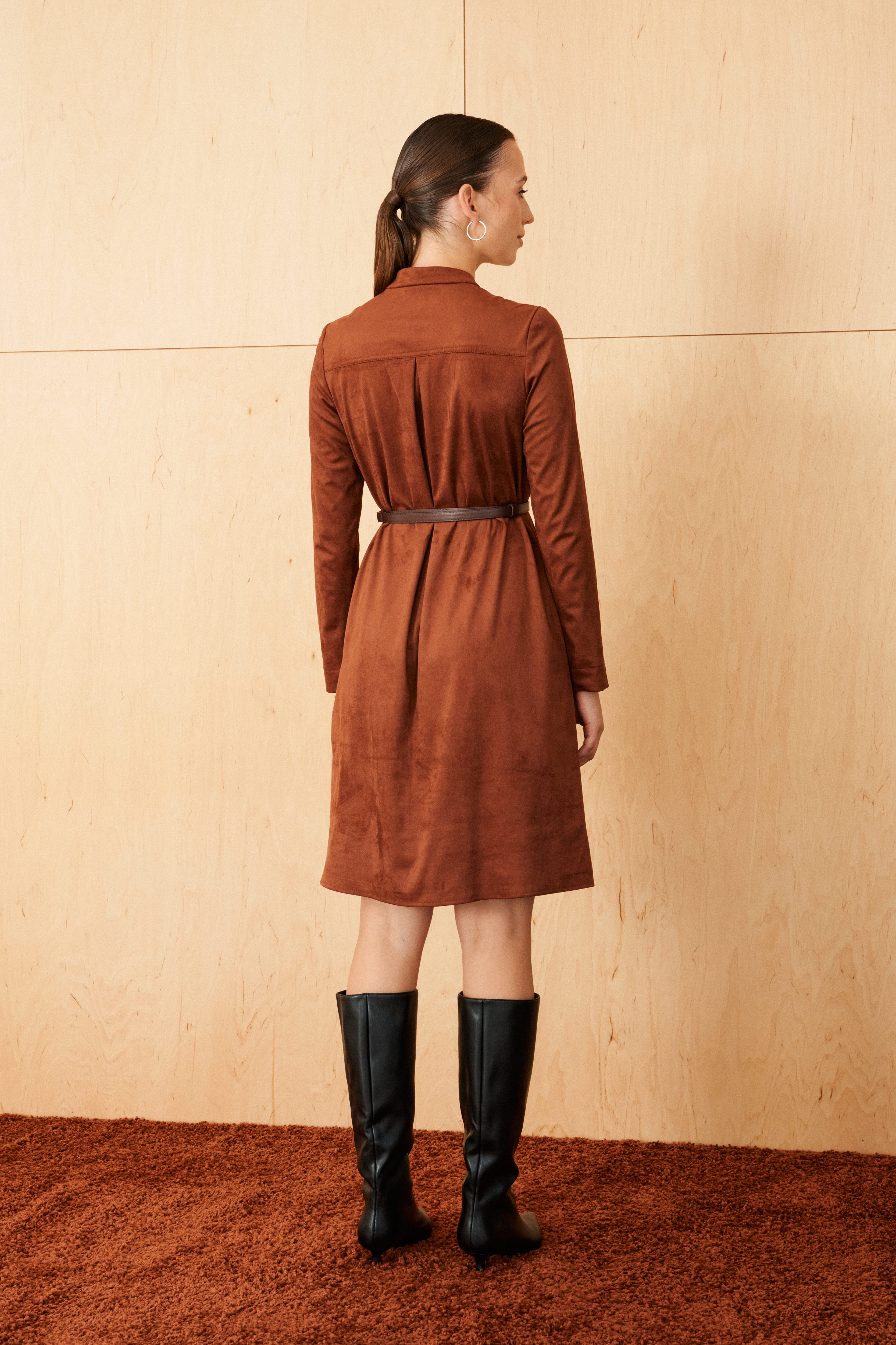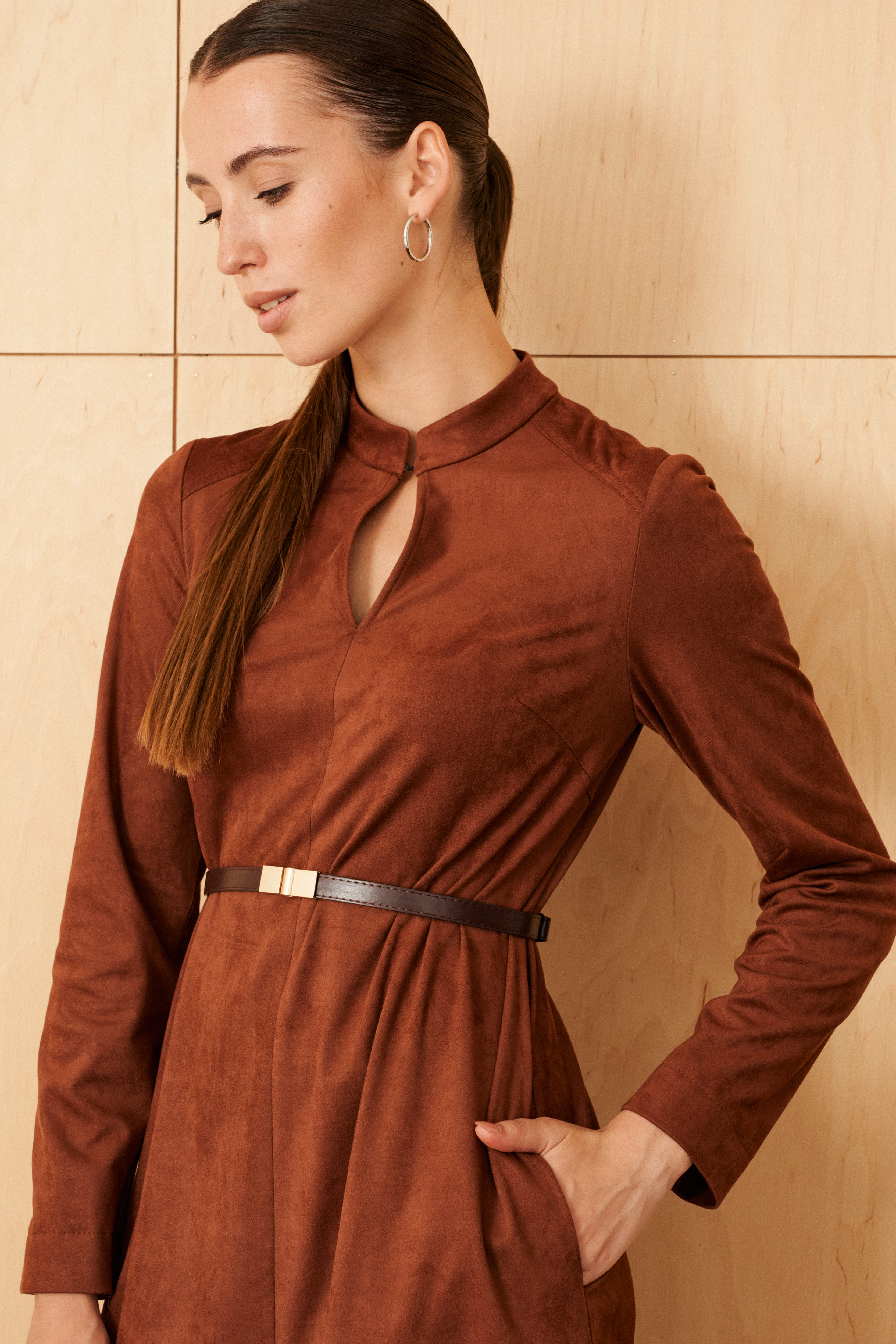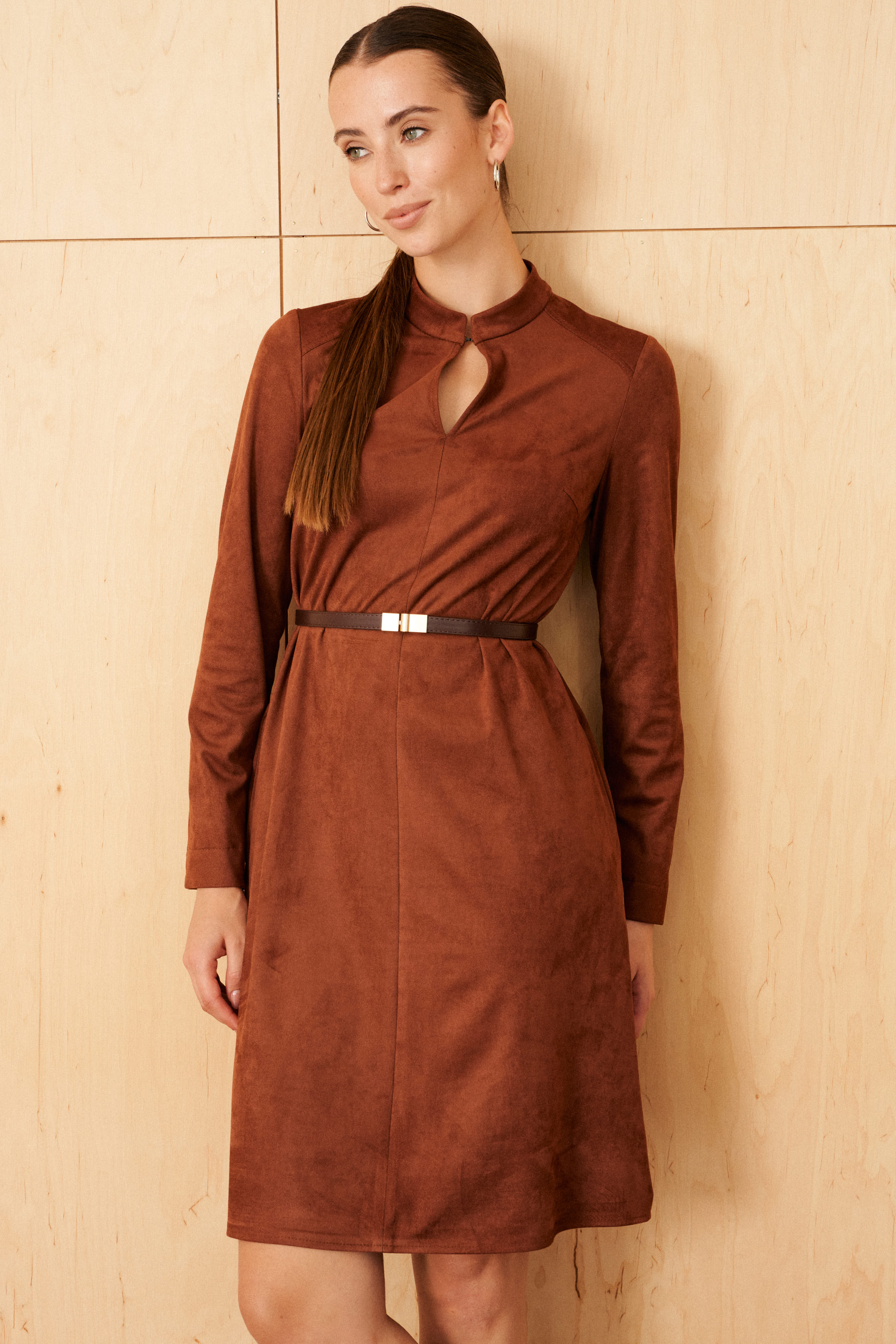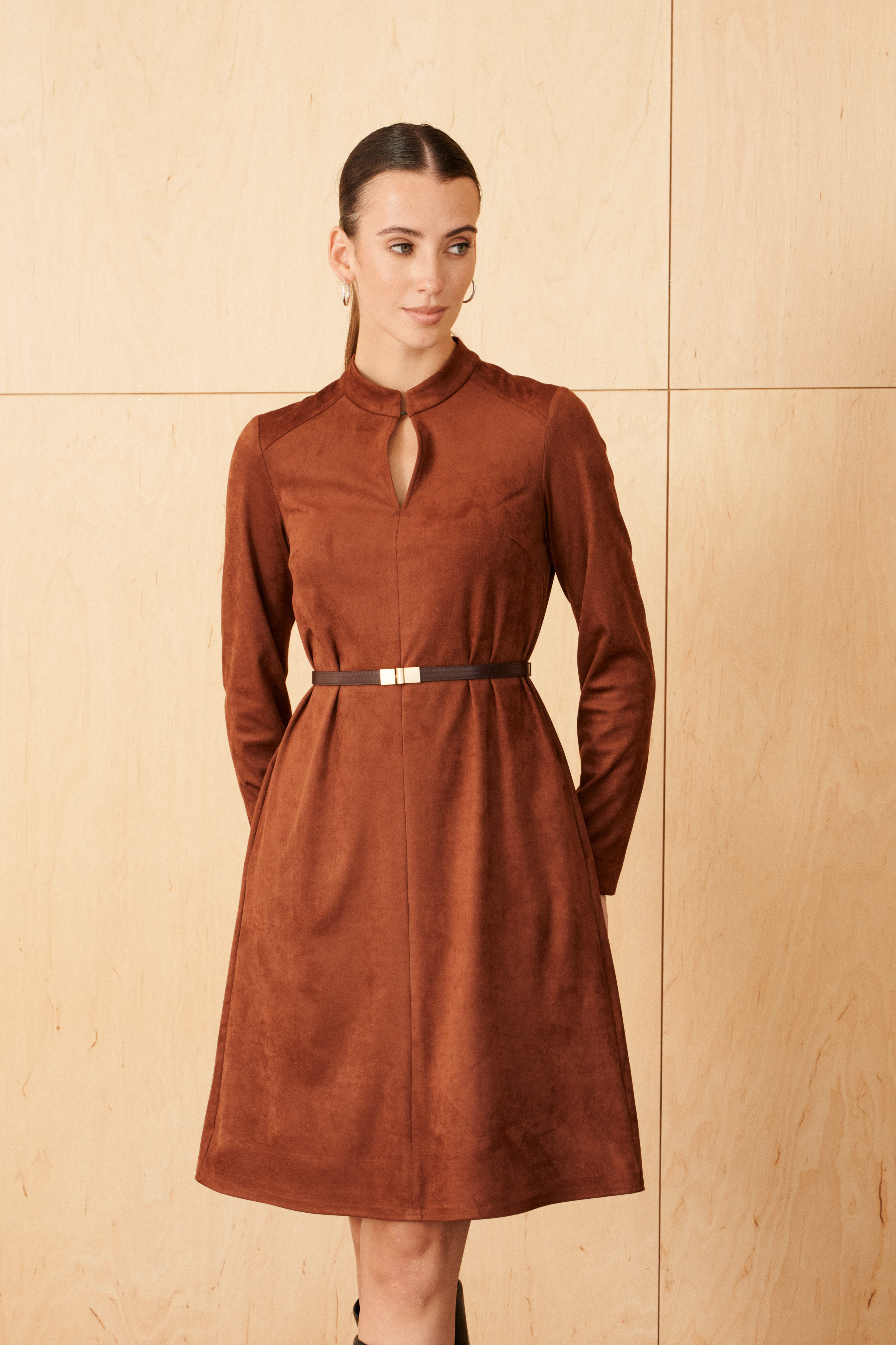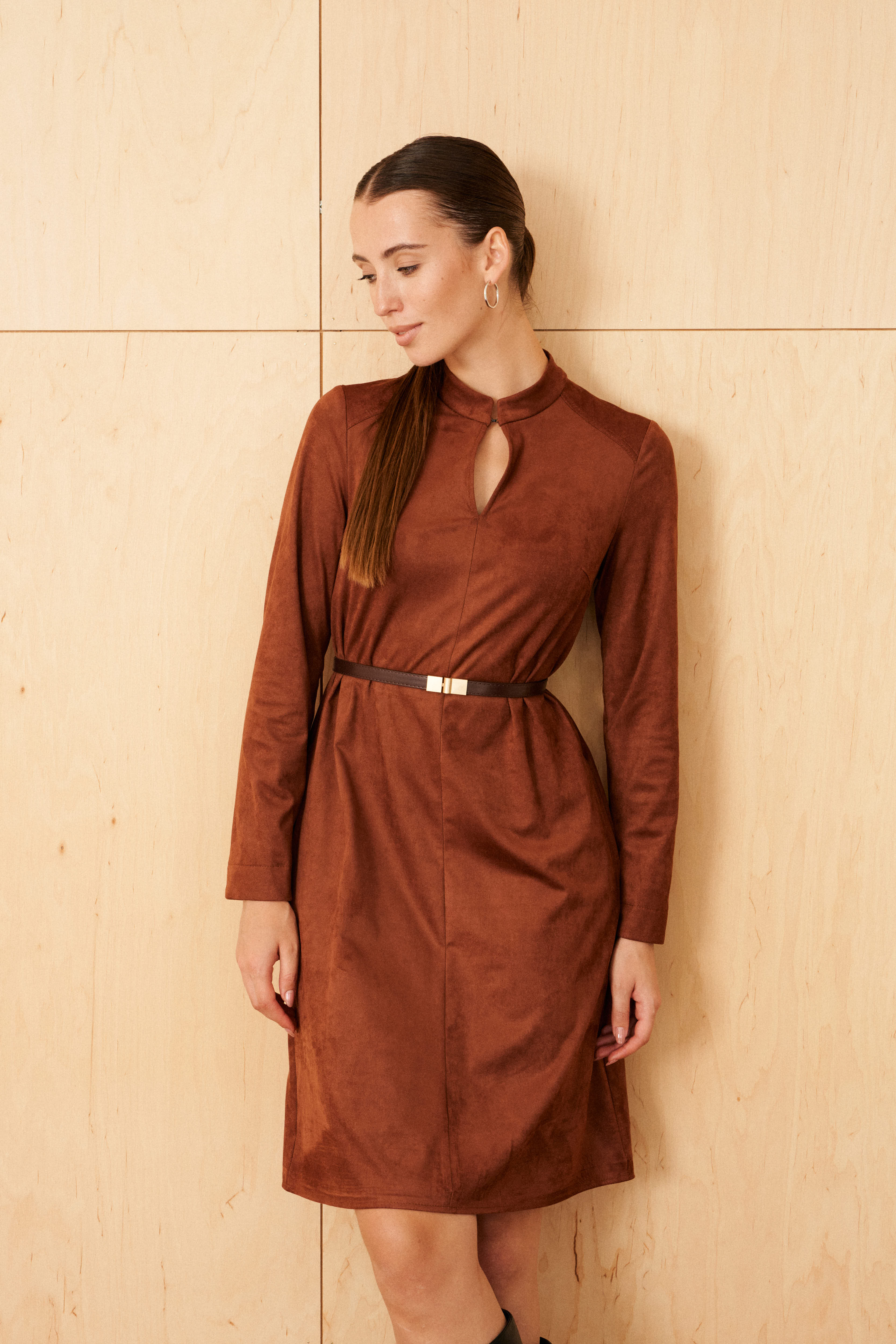 Платье из эко замши на трикотажной основе Maiga (Цвет: Терракотовый)