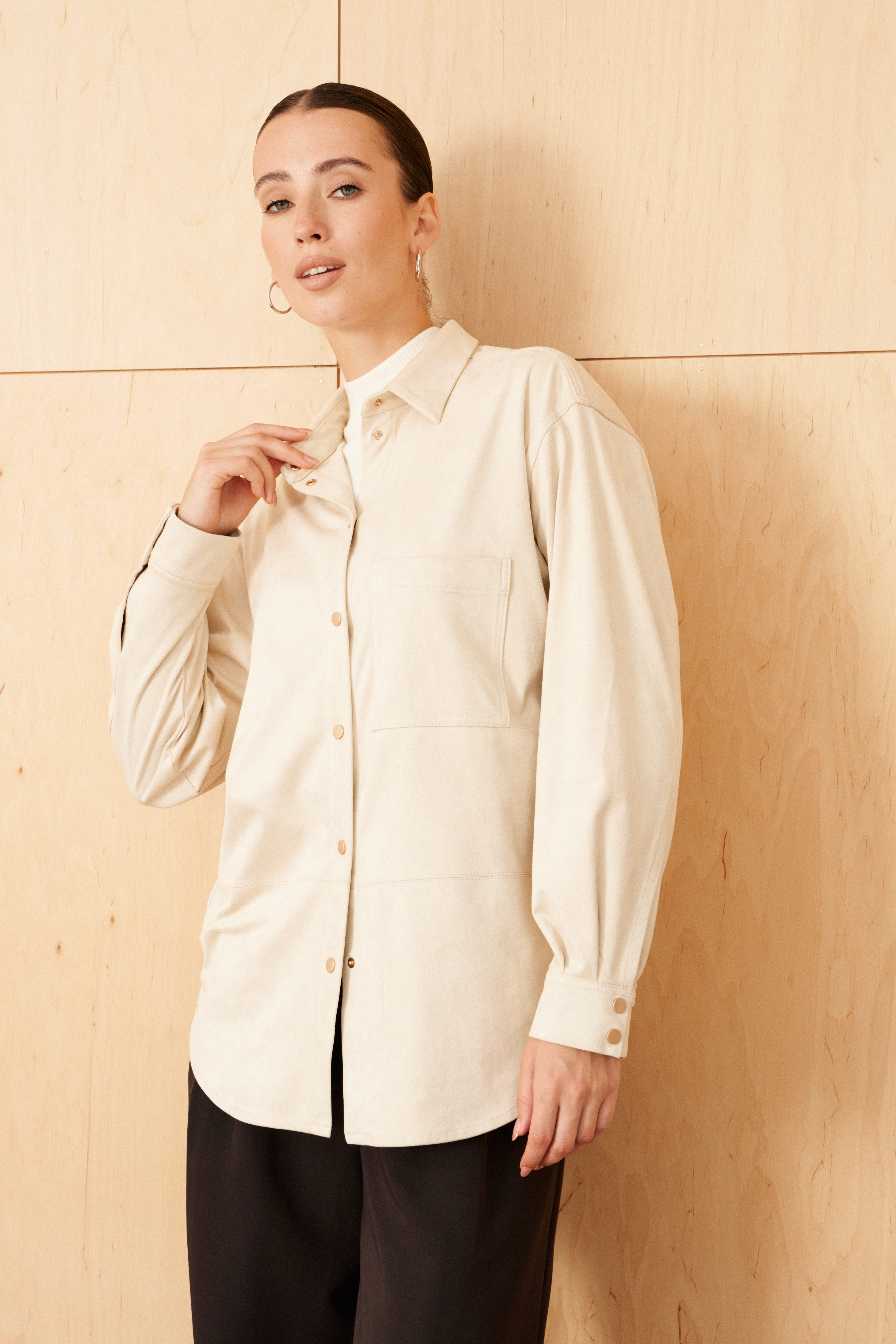 Рубашка из эко замши на трикотажной основе Branca (Цвет: Молочный)