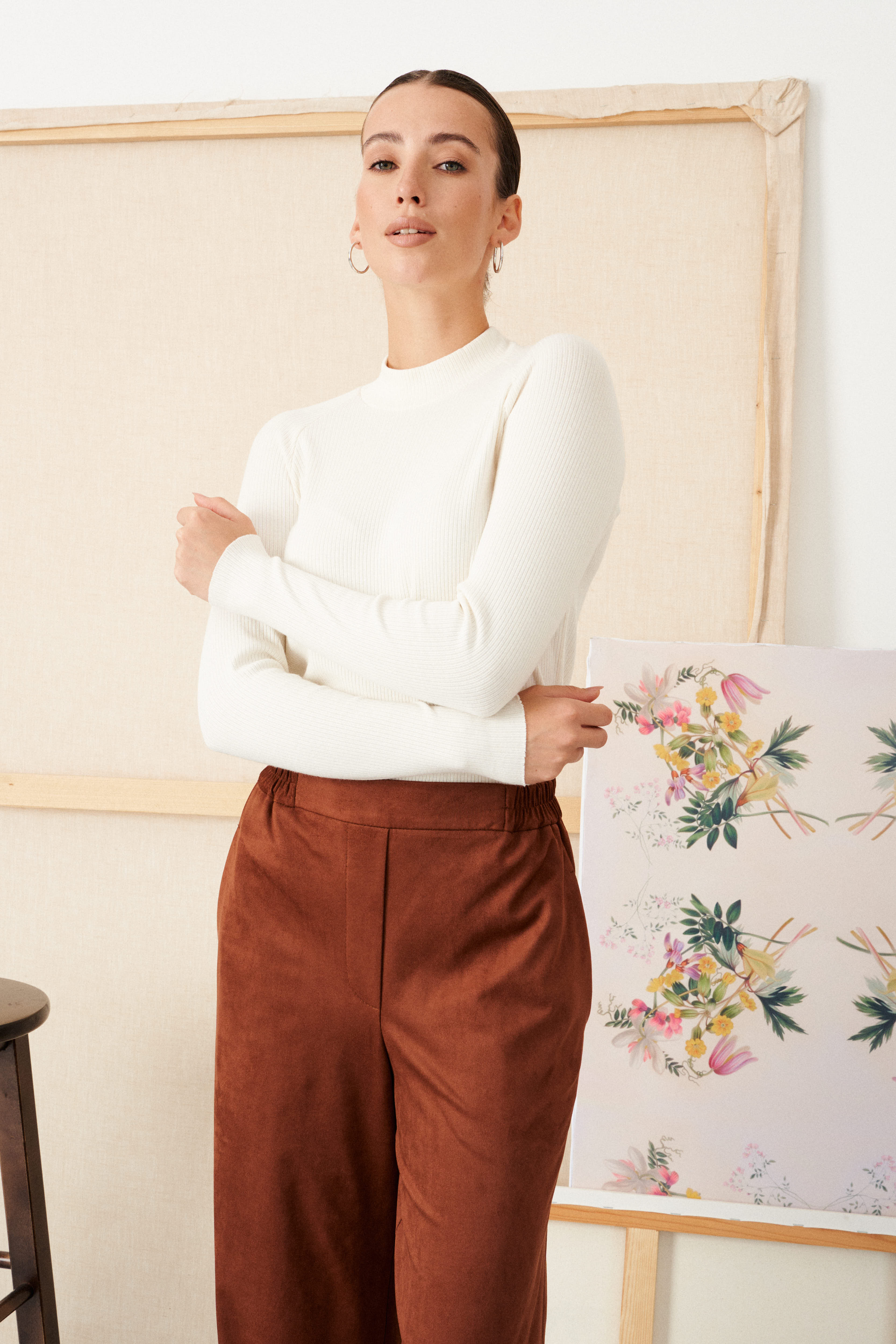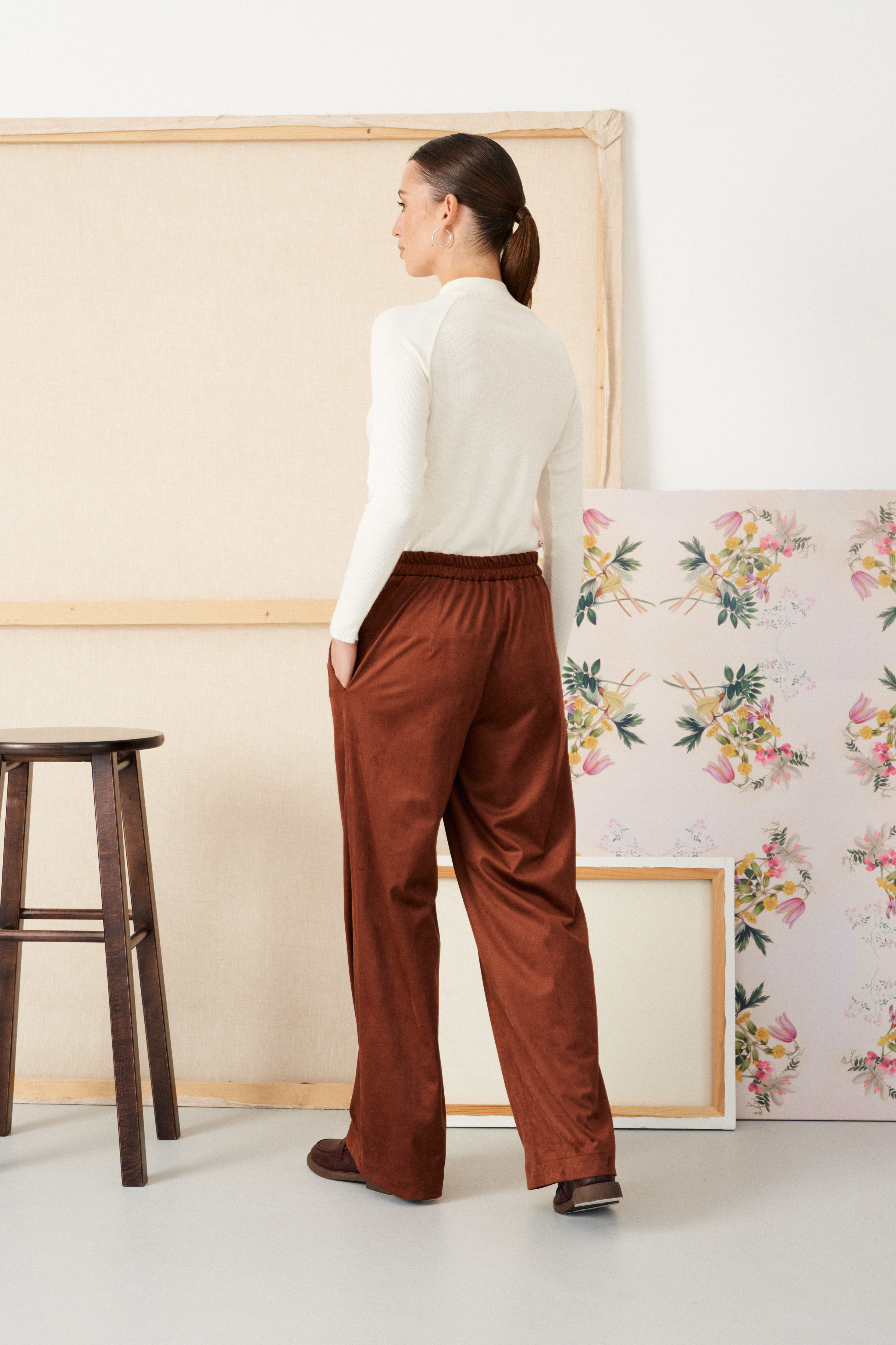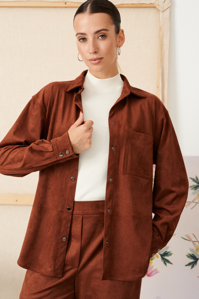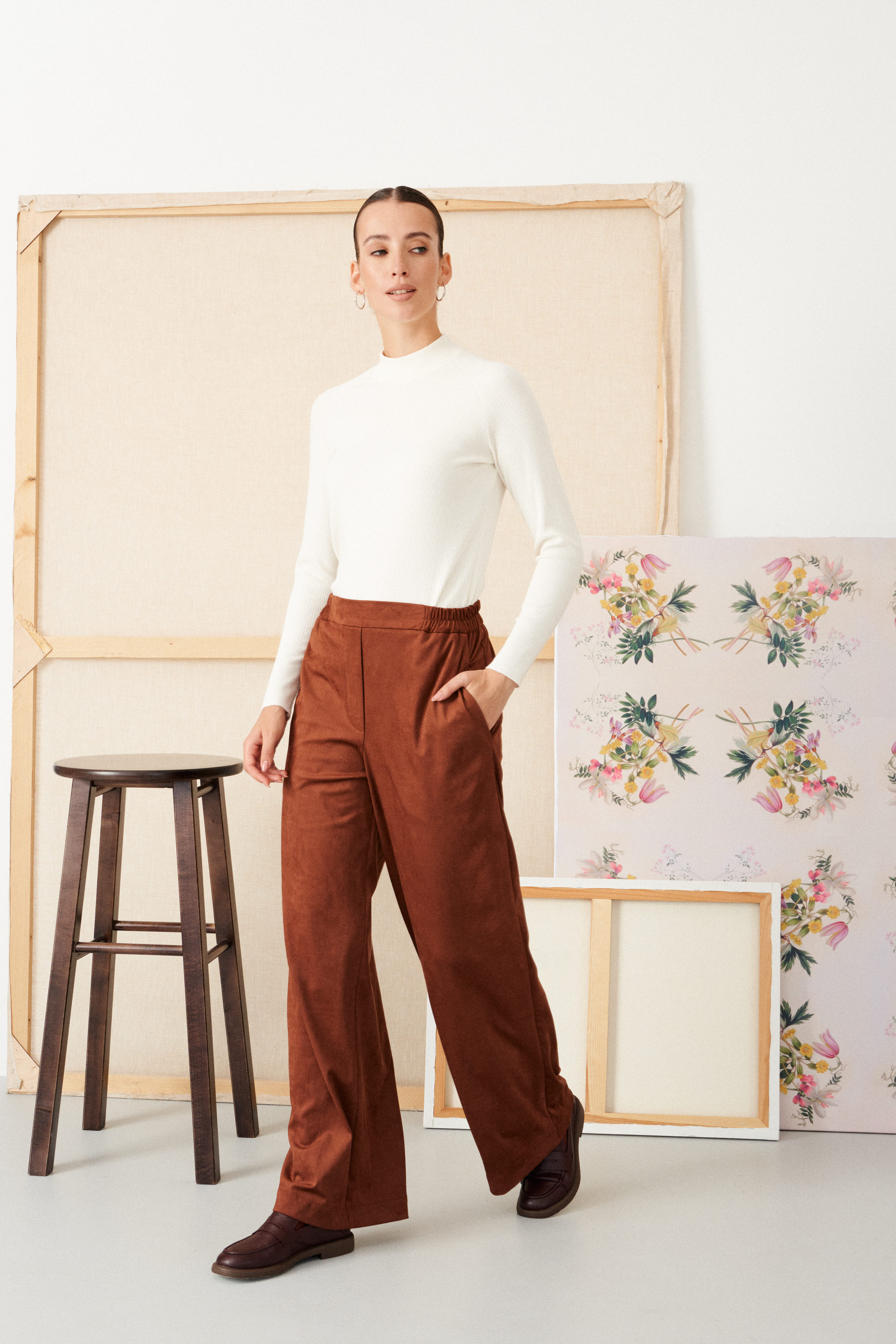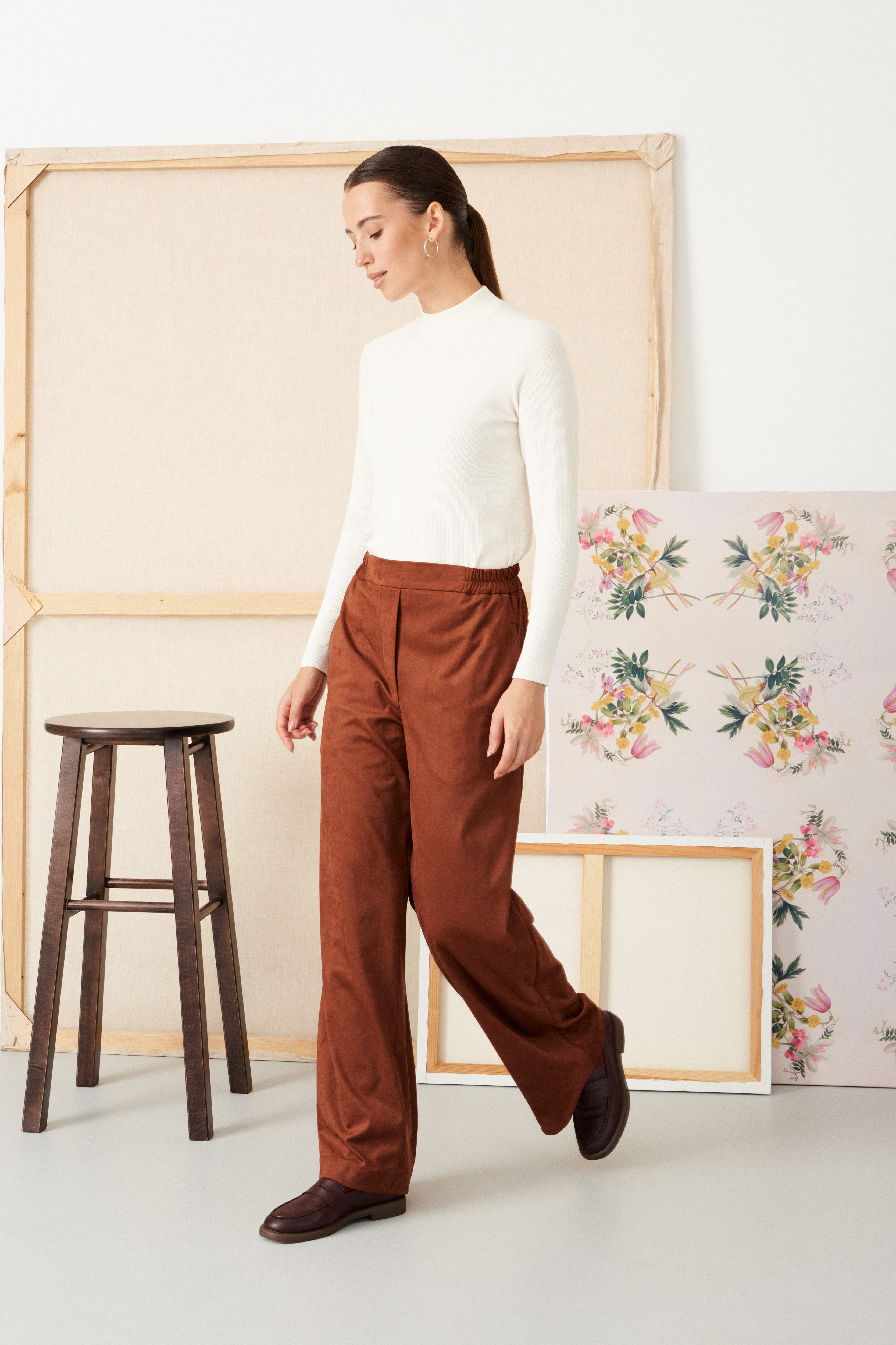Прямые брюки из эко замши на трикотажной основе Alla (Цвет: Коричневый)
