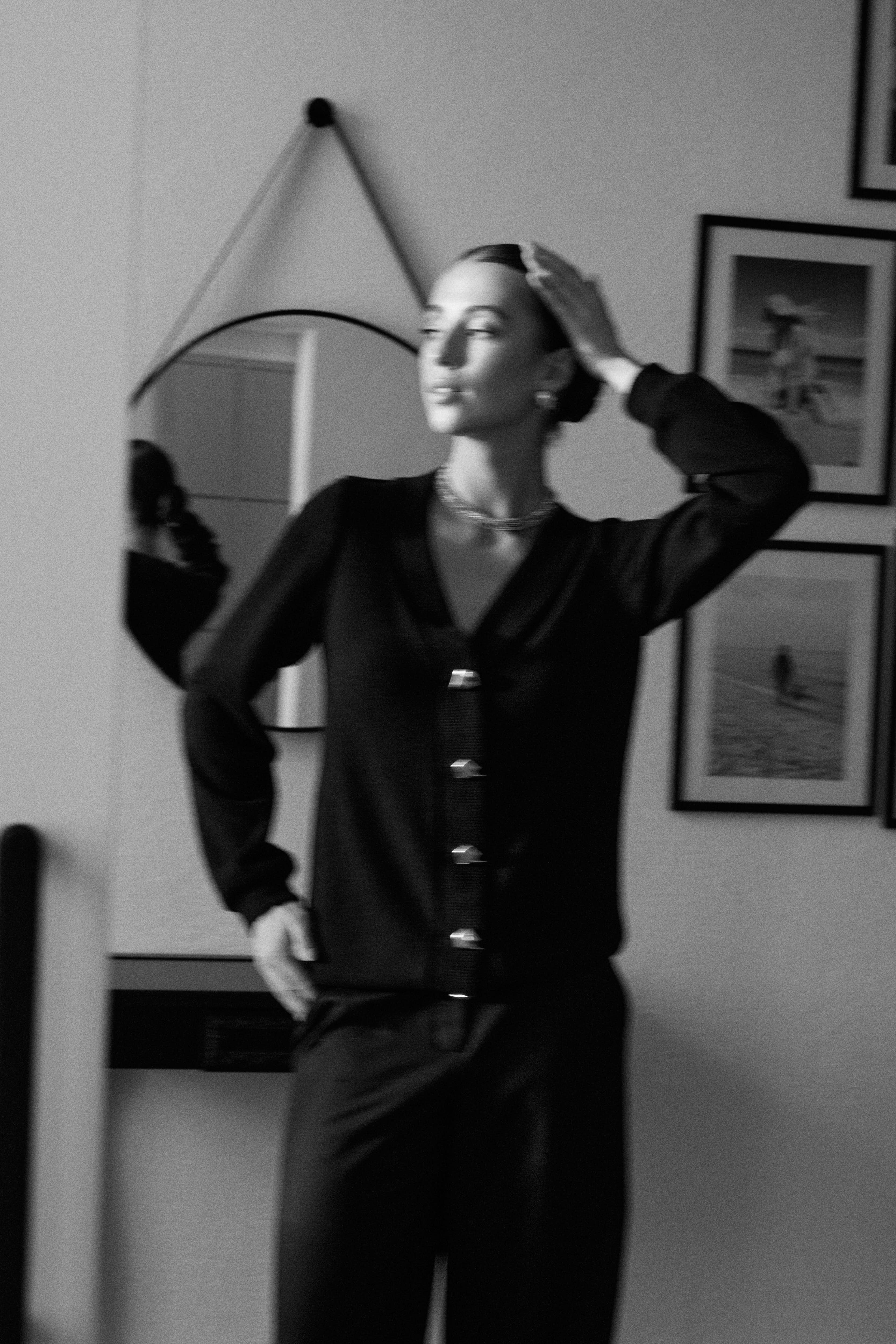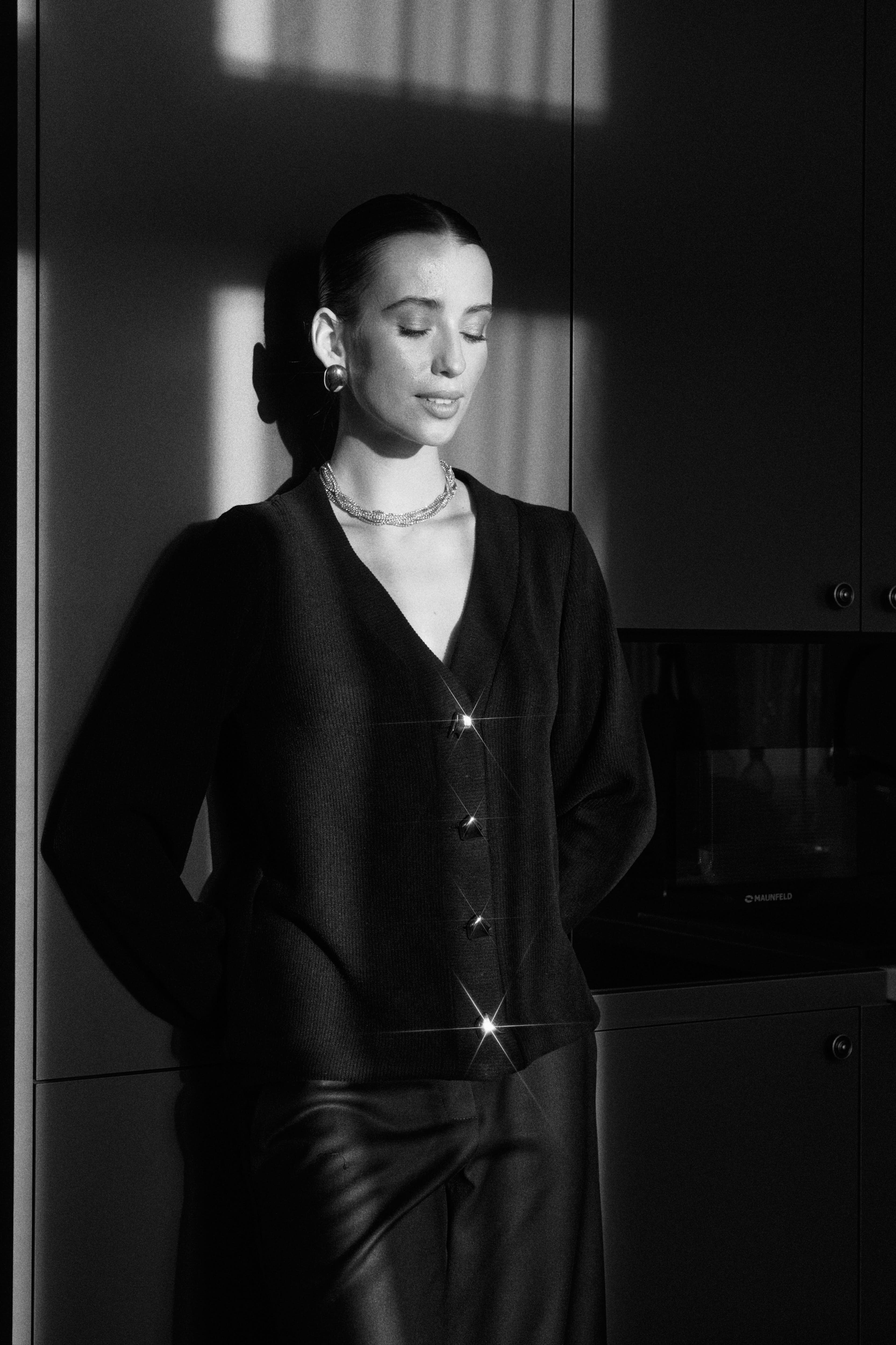 Позвольте себе ощутить утонченную атмосферу лондонских мостовых и послеобеденного чая в саду Кью. Трикотажный костюм — воплощение изысканного английского шика, который ценит классику, комфорт и безупречный крой.
