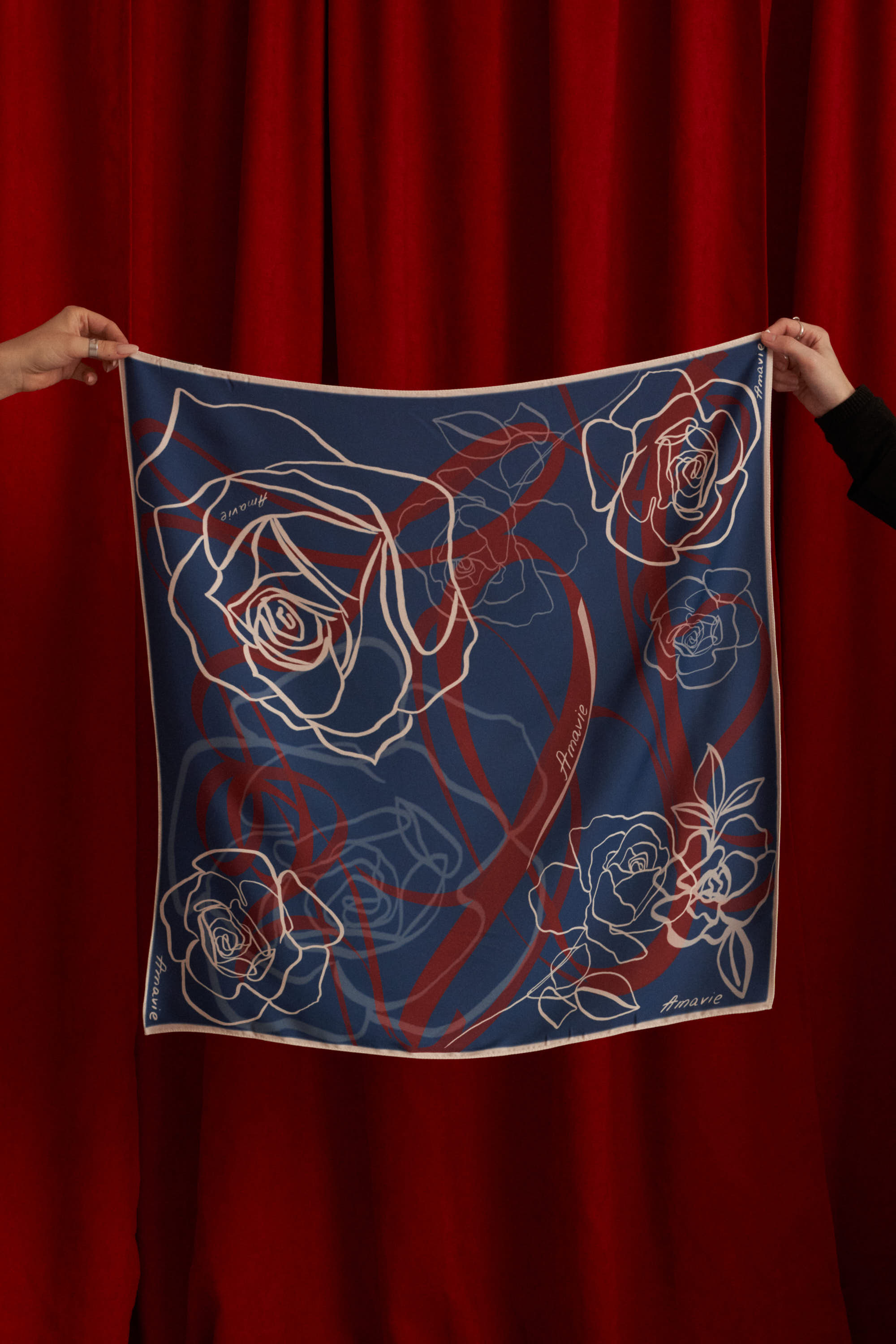 Платок с принтом Шепот Розы (Цвет: Индиго)